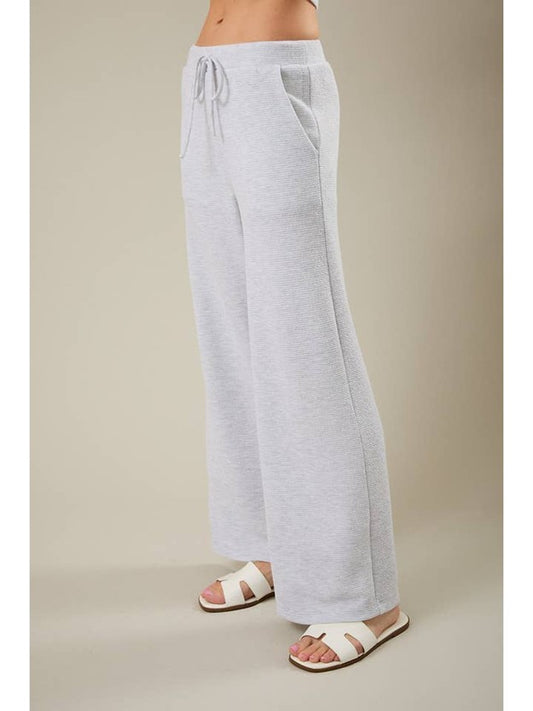Mid Rise Elastic Waist Drawstring Wide Leg Pants – Light Heather Gray | Gilli